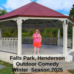 A stone arch with the words "One Mic Stand-up;s Park Comedy Jellicoe Park selected Tuesdays and Thursdays 7 to 8:30 PMDecember 16, 2025 - 6:30 pm