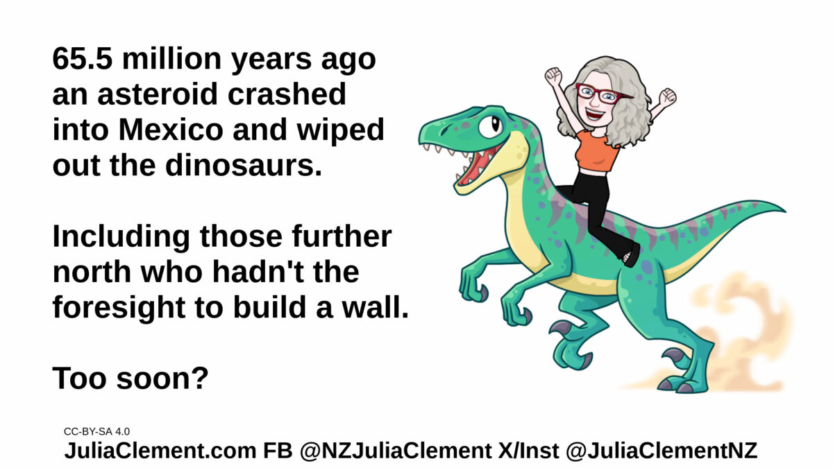 65.5 million years ago an asteroid crashed into Mexico and wiped out the dinosaurs.