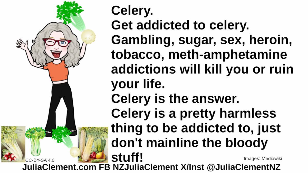 Celery is a pretty harmless thing to be addicted to, just don’t mainline the bloody stuff!